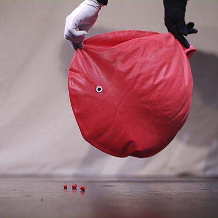 Ein Stück über Werden, Vergehen, Wandel und Neubeginn. Die Geschichte über das kleine Rotbällchen lebt vom ständigen Wandel. Sie entführt uns in eine phantasievolle Welt, in der eins ins andere übergeht, seine Gestalt verändert und uns darüber staunen lässt. Ein kleiner roter Ball bekommt ein Gesicht und blickt uns freundlich an - Rotbällchen. Eine Hand wird zu Rotbällchens kleinem Körper, mit dessen Beinchen es schwarz- weißen Zehen Töne wie aus einem Instrument entlockt. Ein riesiger roter Ballon mit dem es eben noch durch den Raum schwebte, verliert seine Luft und zieht als Fisch an uns vorüber. Er hinterlässt uns kleine rote Bällchen.